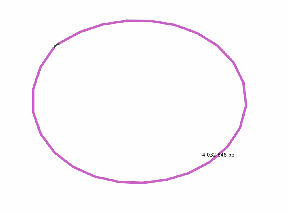 1 contig of length 4,032,848 bp was obtained, which covers 99,998% of the reference genome (4,045,677 bp) and shows misassemblies = 0.